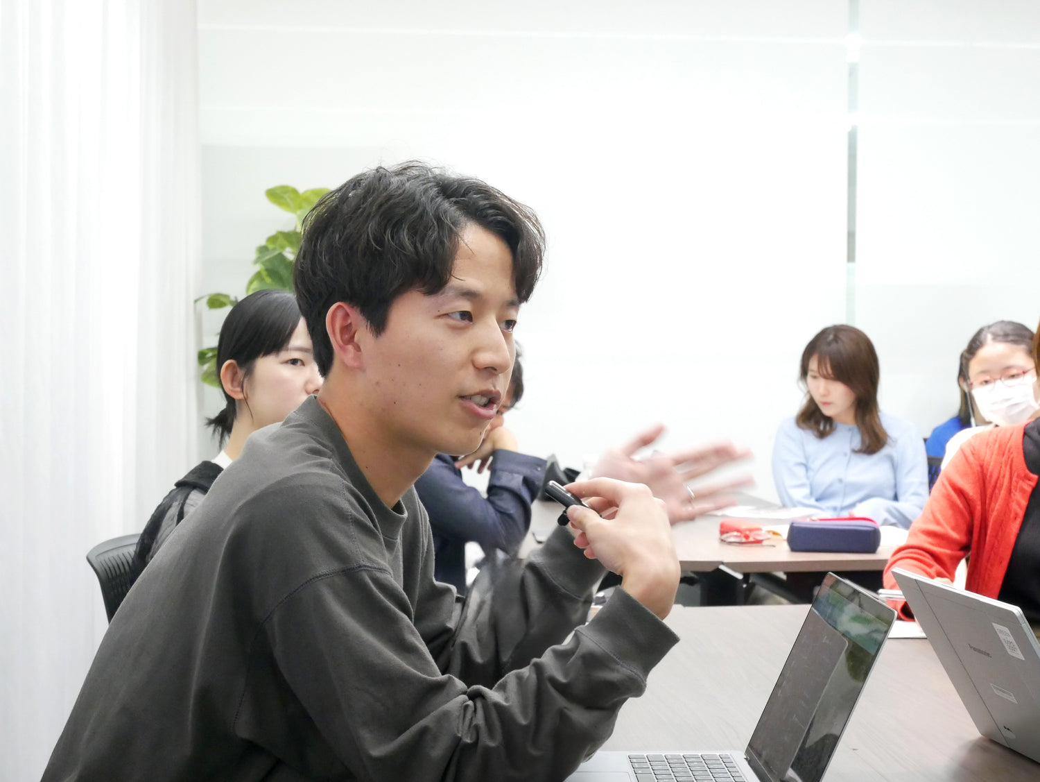 普段あまり関わることのない別部署の方とじっくり話すことができて、すごく良い機会となりました。色々な視点に触れられて、まさに頭の体操という感じでした。私たちのチームは偶然にもペット好きのメンバーが集まって、『患者さんも、ペット(犬)も、社会も、ヘルシー&ハッピーな世界へ――服薬サポートドッグが服薬から健康、そして社会の課題を解決する』という企画を発表しました。アイデアそのものは面白かったと思うのですが、正直まだ詰めきれていない部分もあって…。でも、それが逆にもっと深く考えてみたいという気持ちにつながりました。
