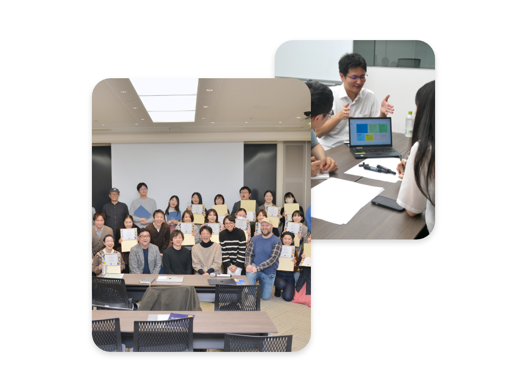 経験豊かなスタッフが、受講者の企画を社会実装へつなげるため、課題整理・アイデア設計から実現可能性の検証、関係機関との連携まで伴走支援します。